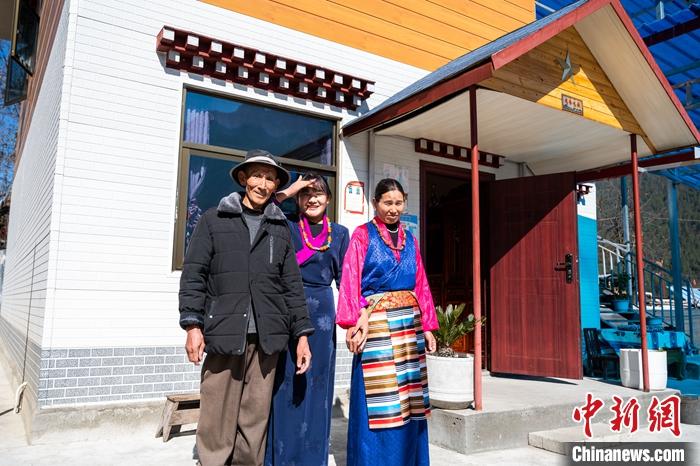 圖為1月28日,察隅縣上察隅鎮(zhèn)榮玉村阿迪(右一)一家在新居前合影。 中新社記者 何蓬磊 攝
