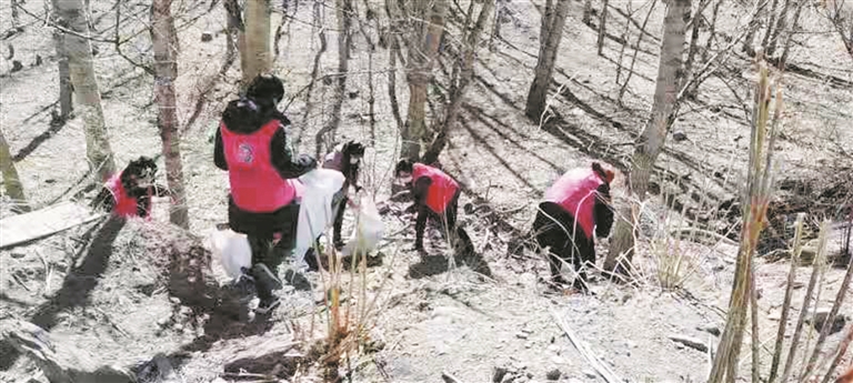 在春節(jié)、藏歷新年來(lái)臨之際,為深入貫徹落實(shí)“拉薩市文明城市創(chuàng)建”工作精神,2月5日,由拉薩市婦聯(lián)黨組書(shū)記帶隊(duì),帶領(lǐng)8名黨員干部職工深入達(dá)孜區(qū)唐嘎鄉(xiāng)窮達(dá)村與市婦聯(lián)4名駐村工作隊(duì)員聯(lián)合開(kāi)展了“助力鄉(xiāng)村振興、從我做起從身邊做起”為主題的巾幗志愿服務(wù)活動(dòng)。 活動(dòng)中,市婦聯(lián)巾幗志愿服務(wù)隊(duì)成員投入到保護(hù)生態(tài)環(huán)境、清理白色垃圾、踐行鄉(xiāng)村振興行動(dòng)當(dāng)中。黨員干部職工和駐村點(diǎn)黨員干部職工兩人一組,手持裝垃圾的麻袋,每個(gè)人在林地中白色垃圾最多、最臟的角落清理垃圾,為整個(gè)林地的生態(tài)保護(hù)和環(huán)境衛(wèi)生作出了應(yīng)有貢獻(xiàn),更在引領(lǐng)基層廣大群眾深入踐行文明城市創(chuàng)建、保護(hù)生態(tài)環(huán)境、整治環(huán)境衛(wèi)生等方面充分發(fā)揮了黨員的先鋒模范帶頭作用。