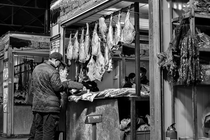 市民在藥王山農(nóng)貿(mào)市場(chǎng)挑選牦牛肉。記者 張雪芳 攝