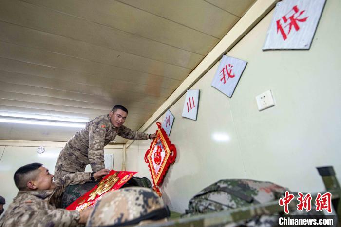 執(zhí)勤點上的官兵們,用“?!弊?、中國結(jié)將保溫方艙精心點綴裝飾,把祝福和期許默默留在心間?!耙患也粓A,萬家團圓?!瘪R雪建是官兵中唯一的零零后戰(zhàn)士,他表示:“一身戎裝接過送來的‘?!?,便是扛下了肩上的使命與責任,戰(zhàn)位上的新年就是邊關(guān)軍人的守望?!?/p>