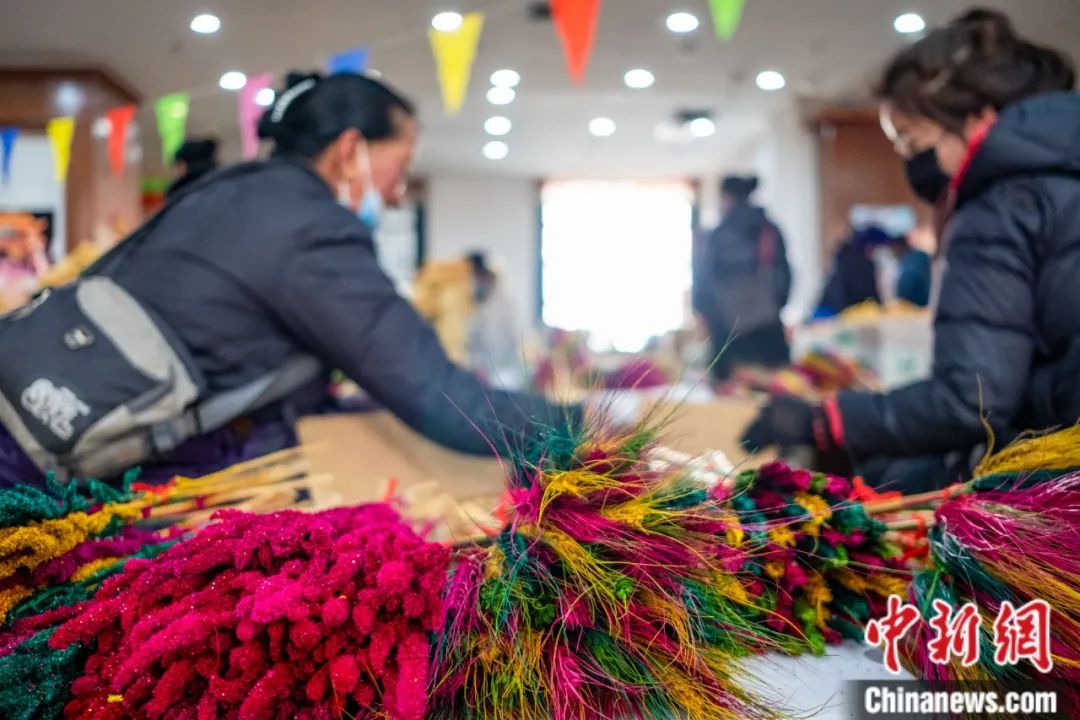 藏歷新年前,在拉薩市城關(guān)區(qū)拉魯社區(qū)、城關(guān)花園等地,不少農(nóng)牧民提前1月左右開始縫制五彩經(jīng)幡進行銷售,當(dāng)五彩經(jīng)幡“臨時市場”形成了,則預(yù)示著藏歷新年的“腳步”越來越近了。