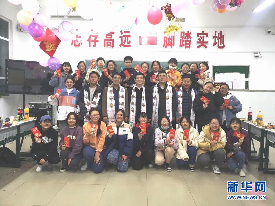 除夕當(dāng)日,老師們與同學(xué)聯(lián)歡后合影留念(山大附中提供)。新華網(wǎng) 發(fā)