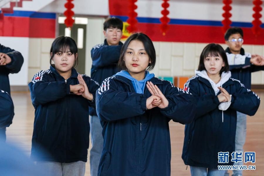 次仁曲尼與同學(xué)們一起學(xué)習(xí)形神拳。新華網(wǎng) 發(fā)(王浩慶 攝)