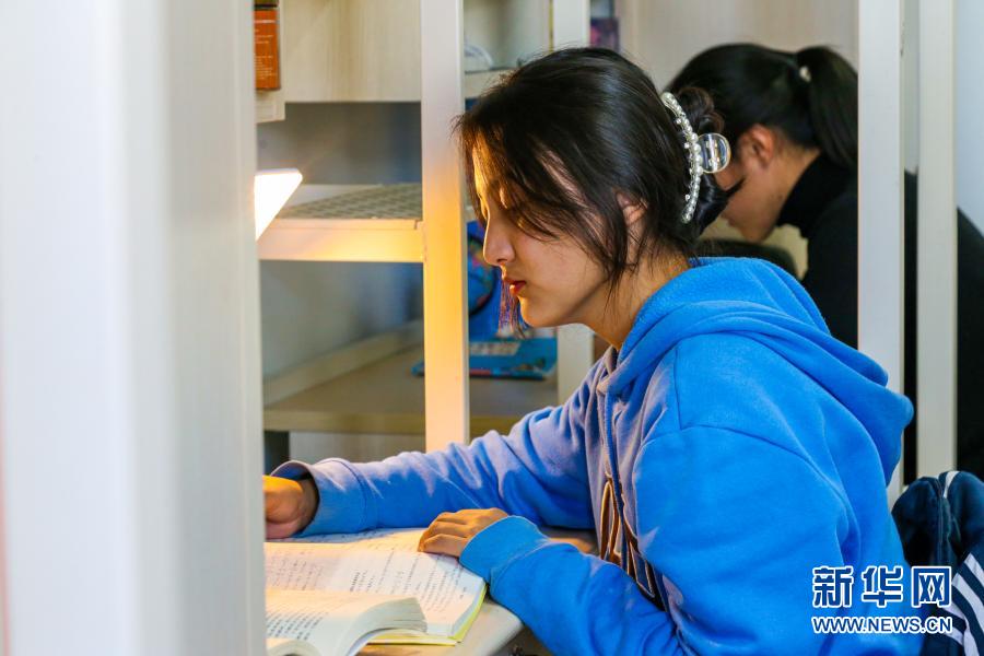 次仁曲尼在寢室學(xué)習(xí)。新華網(wǎng) 發(fā)(王浩慶 攝)