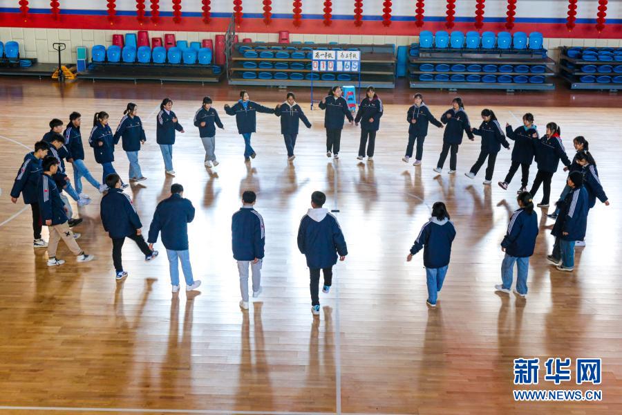 體育課上,西藏班學(xué)生齊跳鍋莊舞。新華網(wǎng) 發(fā)(王浩慶 攝)