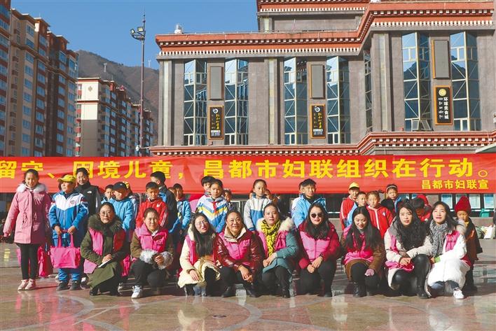 昌都市婦聯為家庭困難學生發(fā)放書包。