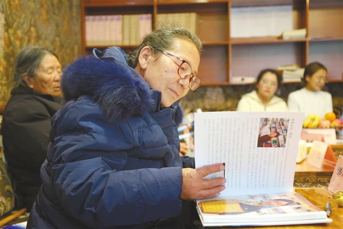 圖為昌都市婦聯組織老黨員干部查看“70人70事獻禮畫冊”?! ?/p>