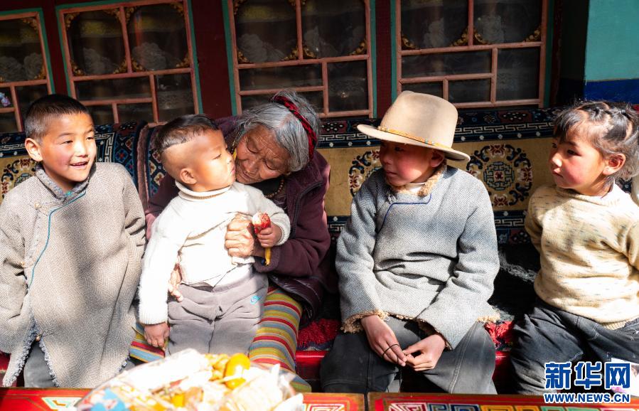 沖多(中)在家和孫子孫女們?cè)谝黄穑?月15日攝)。新華社記者 孫非 攝