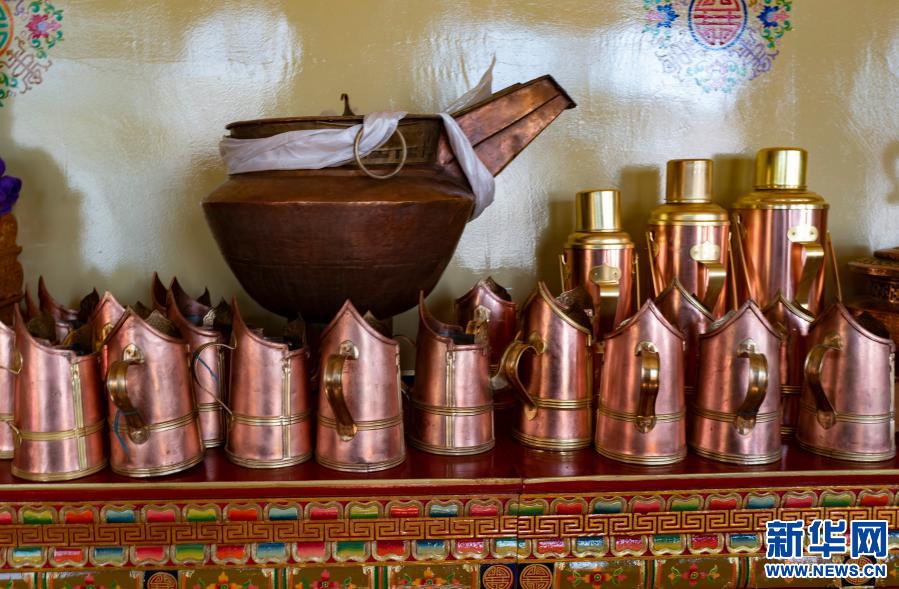 這是1月15日拍攝的沖多家盛青稞酒的器皿。新華社記者 孫非 攝