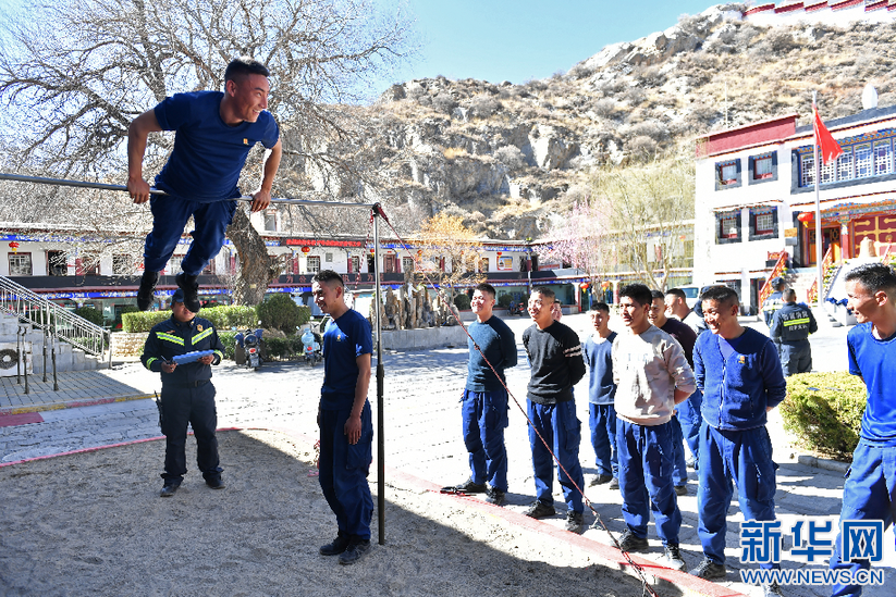 布達(dá)拉宮消防救援大隊隊員開展例行體能測試(3月4日攝)。新華社記者 孫瑞博 攝