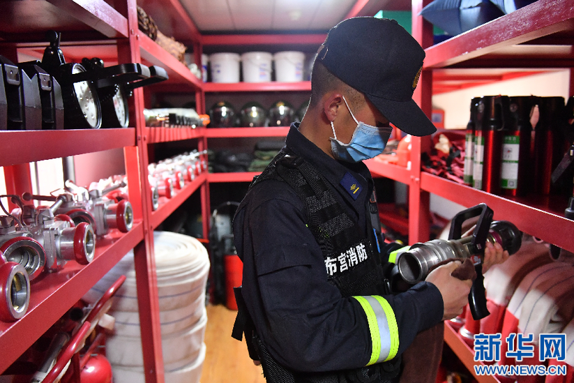 布達(dá)拉宮消防救援大隊隊員在巡邏期間檢查消防設(shè)施(3月4日攝)。新華社記者 孫瑞博 攝