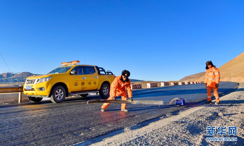 安多公路養(yǎng)護(hù)段工作人員在清理國道109上的垃圾(1月13日攝)。新華社記者 張汝鋒 攝