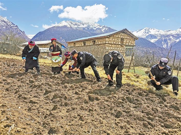 正值春耕時節(jié),山南市錯那縣吉布鄉(xiāng)到處一派熱火朝天的農(nóng)忙景象。為確保轄區(qū)春耕生產(chǎn)順利進(jìn)行,山南邊境管理支隊(duì)吉布邊境派出所移民管理警察走進(jìn)田間地頭,幫助缺少勞動力的農(nóng)戶春耕。