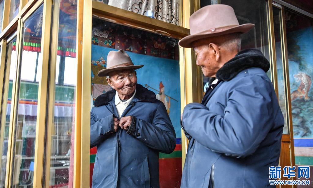 次培老人在家里整理衣服(3月22日攝)。新華社記者 晉美多吉 攝