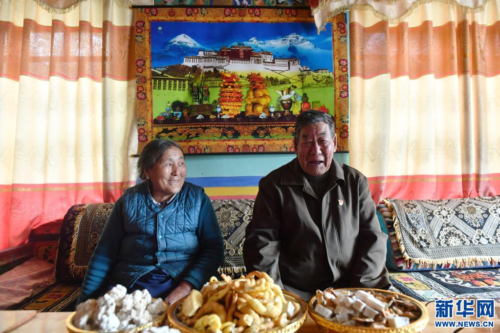索朗楊佩(右)和老伴兒卓嘎在位于米林縣單嘎努覺村的家中留影(3月30日攝)。新華社記者 孫瑞博 攝