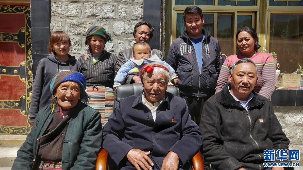 頓珠旺杰(前中)和家人的合影(4月5日攝)。新華社記者 孫陽(yáng) 攝
