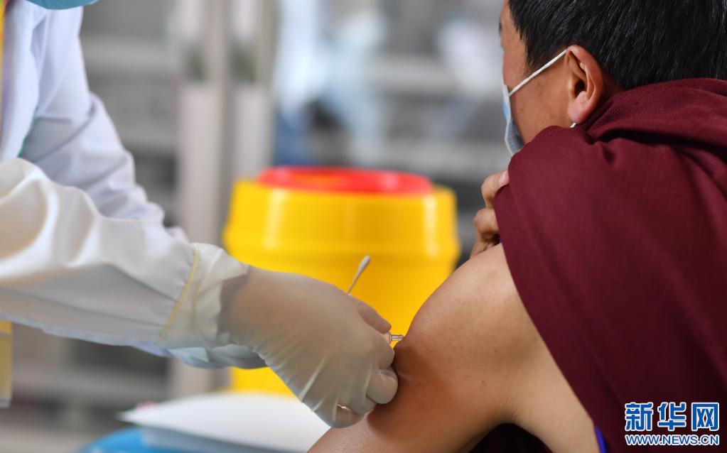 5月13日,一名大昭寺僧人接種新冠疫苗。新華社記者 覺果 攝