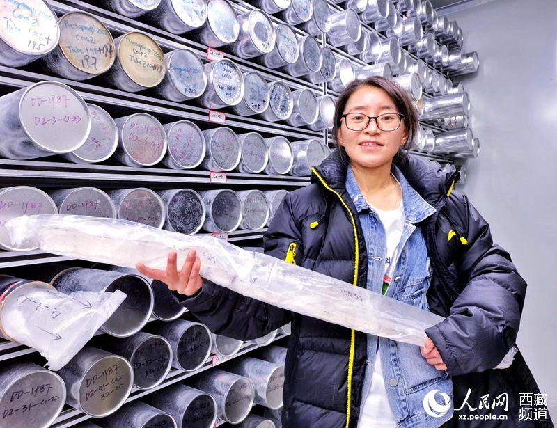工作人員展示冰芯。人民網(wǎng) 李海霞攝