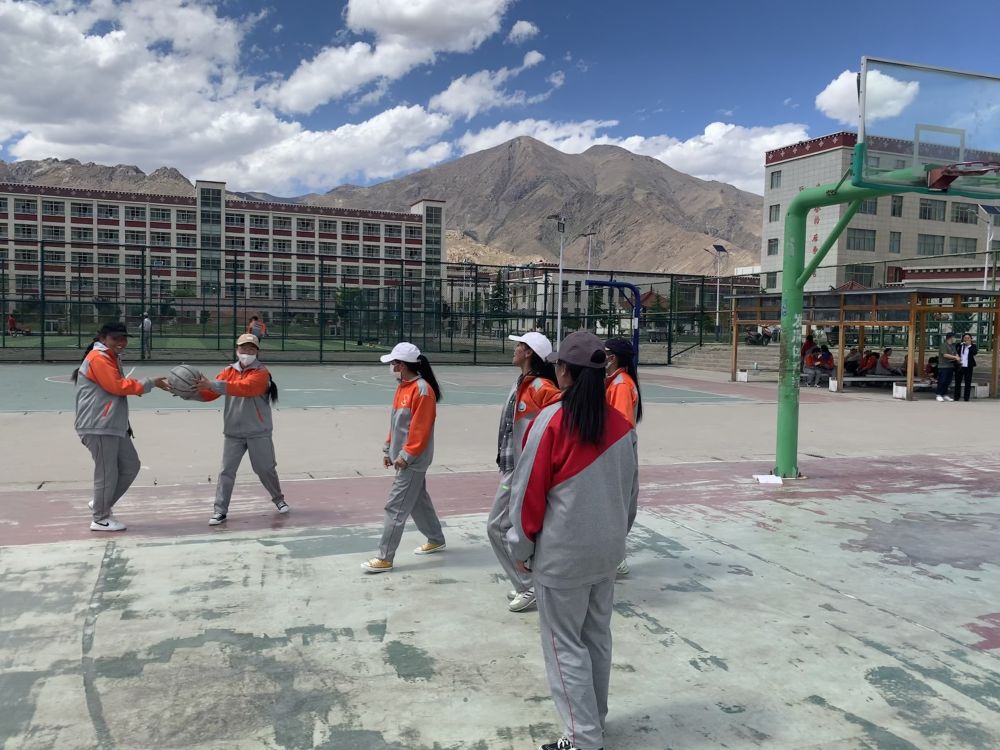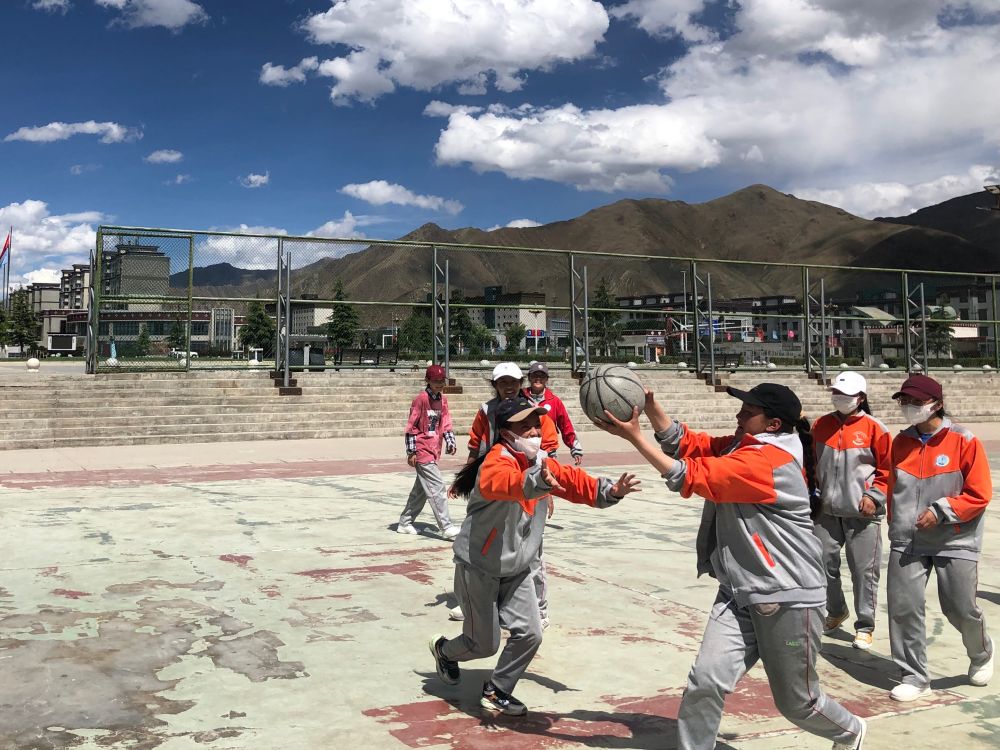 6月1日,西藏自治區(qū)拉薩市,拉薩那曲第二高級中學(xué)女學(xué)生們在操場打籃球。新華社記者劉昕宇攝
