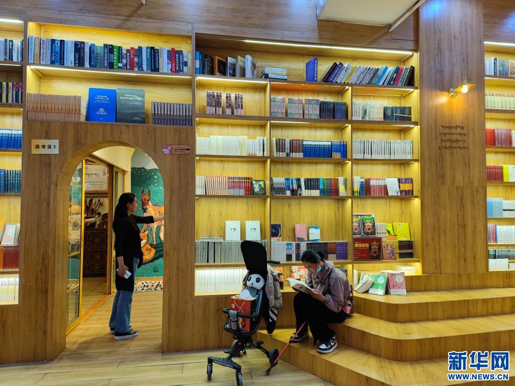 “閱讀與人生相伴,書(shū)香與夢(mèng)想齊飛”。走在拉薩市宗角祿康公園北側(cè),這副對(duì)聯(lián)映入眼簾。走進(jìn)書(shū)屋,只見(jiàn)各式書(shū)籍整齊排列,桌子上擺放著報(bào)紙和雜志。61歲的貢嘎挑選了一本藏語(yǔ)讀物,坐在靠門(mén)的位置,享受自己的閑暇時(shí)光。