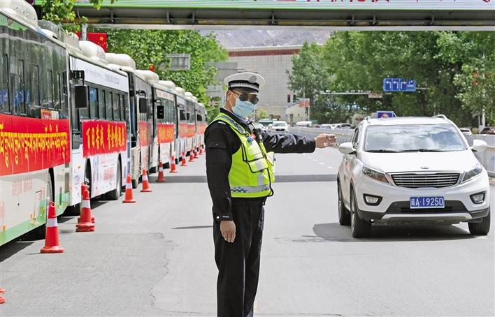 圖為交警在考點外疏導(dǎo)交通秩序。記者 洛桑 次旺 次仁平措 攝