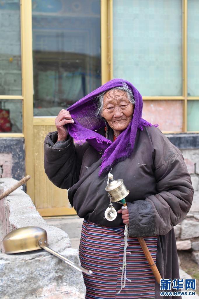 斯曲老人在整理頭巾(4月15日攝)。新華社記者 孫瑞博 攝