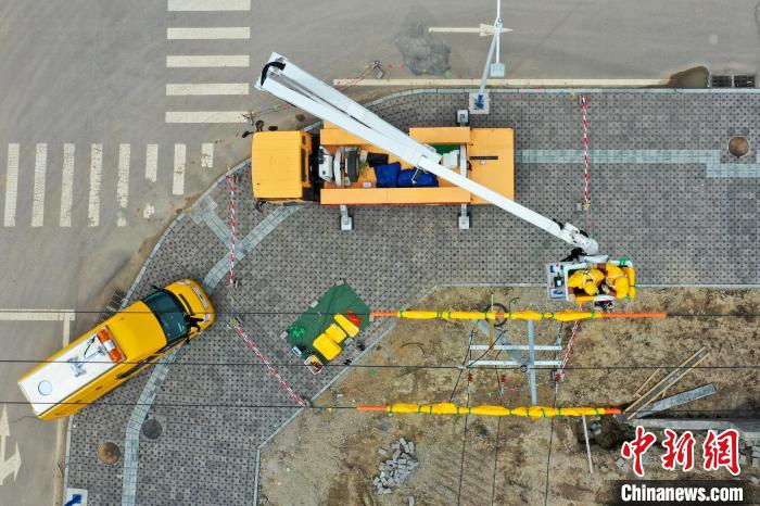圖為航拍帶電作業(yè)現(xiàn)場。張蕾 攝