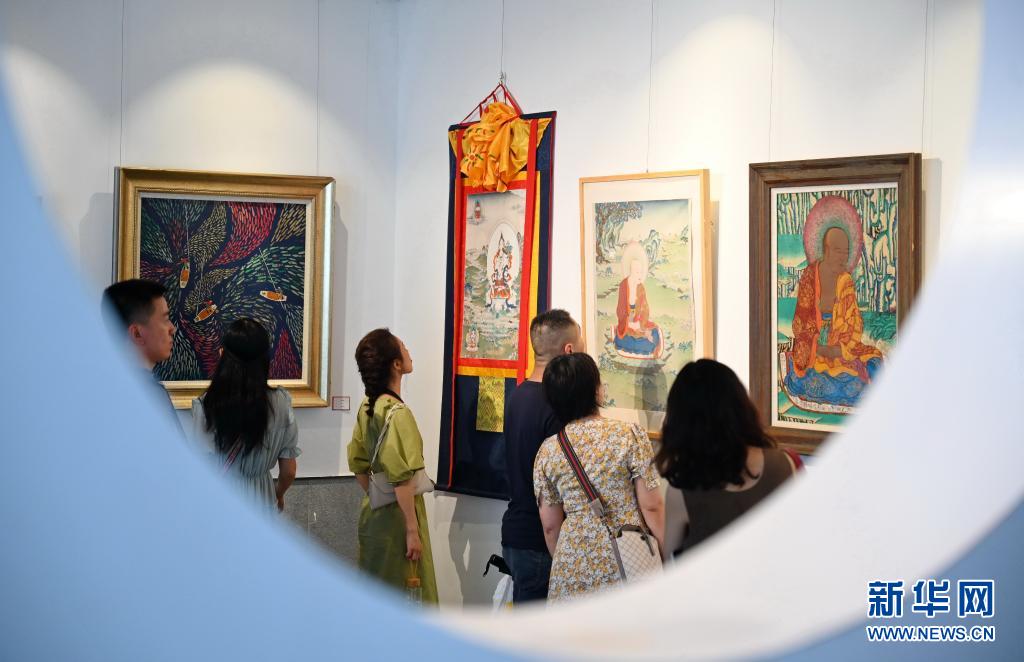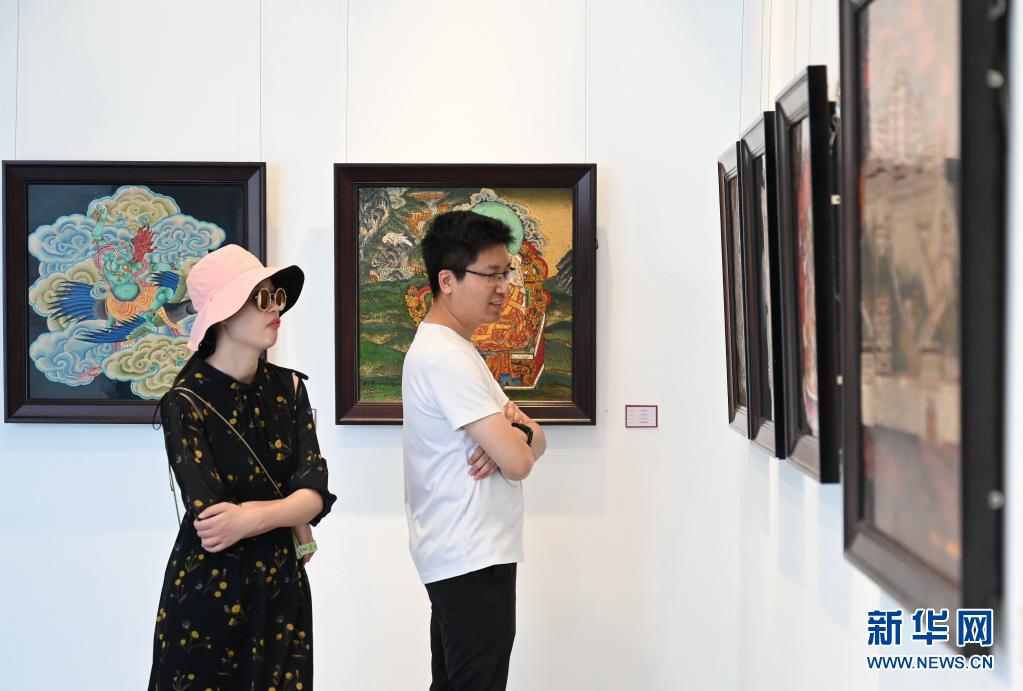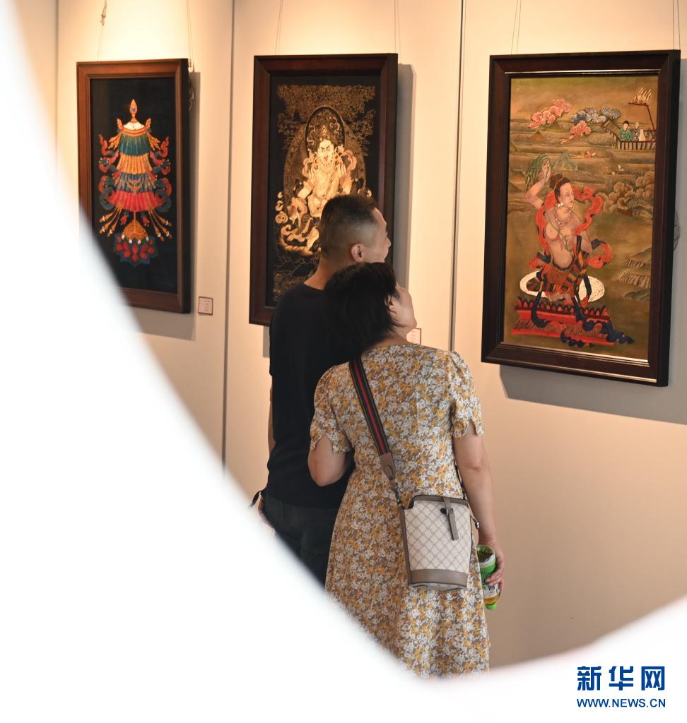 6月12日,市民在福州三坊七巷參觀唐卡漆畫(huà)。新華社記者林善傳攝