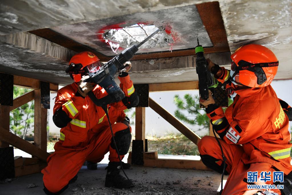 6月15日,參訓(xùn)學(xué)員進(jìn)行向上快速破拆作業(yè)實際操作展示。新華社記者 孫瑞博 攝