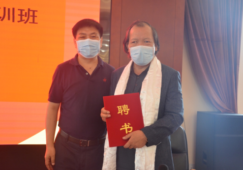 北京藏醫(yī)院院長仲格嘉(左)向明珠(右)頒發(fā)聘書,聘請明珠為北京藏醫(yī)院藏藥浴專題培訓(xùn)班授課老師。