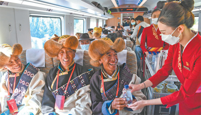 拉林鐵路位于青藏高原岡底斯山與喜馬拉雅山之間的谷地,90%以上的線路走行于海拔3000米以上,地形地質(zhì)條件極其復(fù)雜。經(jīng)過6年多的施工,建設(shè)者們在保護(hù)好生態(tài)環(huán)境的基礎(chǔ)上,攻克一系列全國性、世界性罕見難題,創(chuàng)造了高原鐵路建設(shè)奇跡。延伸的鐵路、飛馳的列車,串起雪域高原上的“團(tuán)結(jié)線”,促進(jìn)各民族交往交流交融;鋪就增收致富的“幸福路”,推動(dòng)產(chǎn)業(yè)轉(zhuǎn)型升級(jí),助力西藏自治區(qū)實(shí)現(xiàn)高質(zhì)量發(fā)展。(版式設(shè)計(jì):蔡華偉)