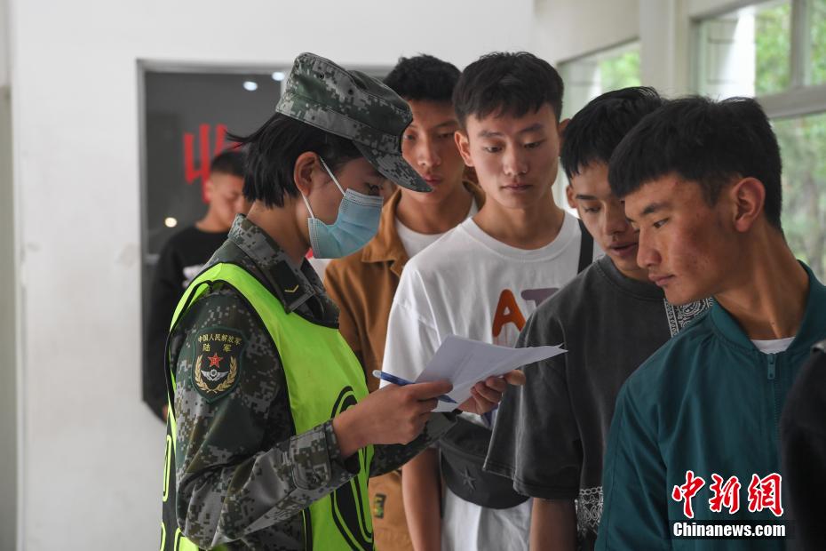 圖為醫(yī)生登記參加定向培養(yǎng)士官體格檢查學(xué)生的基本信息。貢嘎來松 攝