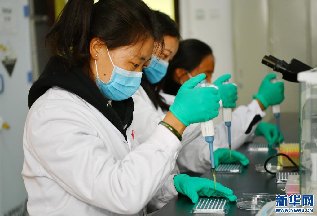 西藏職業(yè)技術(shù)學(xué)院2020屆首屆區(qū)外就業(yè)畢業(yè)生在做實(shí)驗(yàn)(2020年4月9日攝)。 新華社記者 張汝鋒 攝