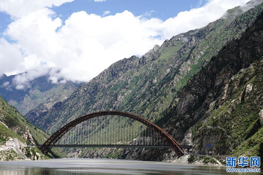 拉林鐵路藏木雅魯藏布江雙線特大橋,全長(zhǎng)525.1米,主拱跨徑430米(2021年7月11日攝)。新華社記者 劉洪明 攝
