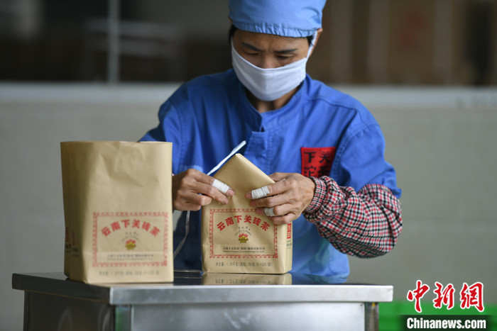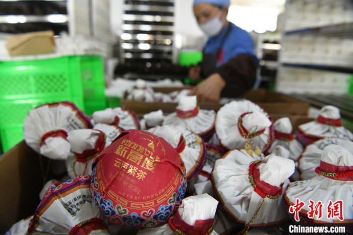 圖為8月12日,云南大理,包裝好的緊茶。中新社記者 劉冉陽(yáng) 攝