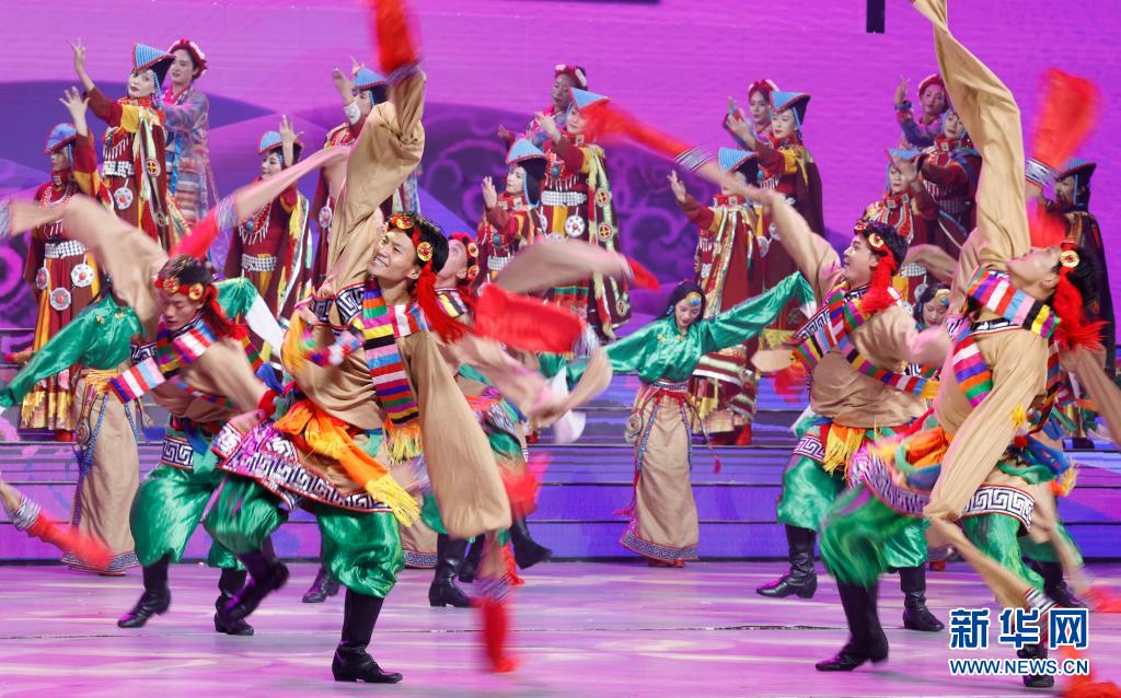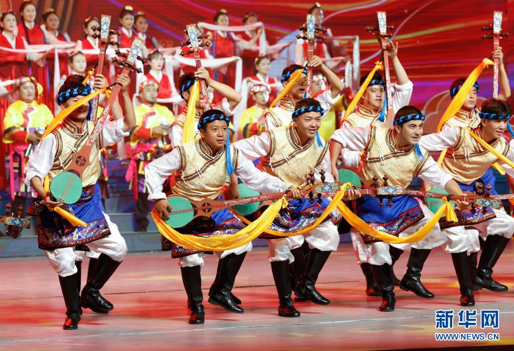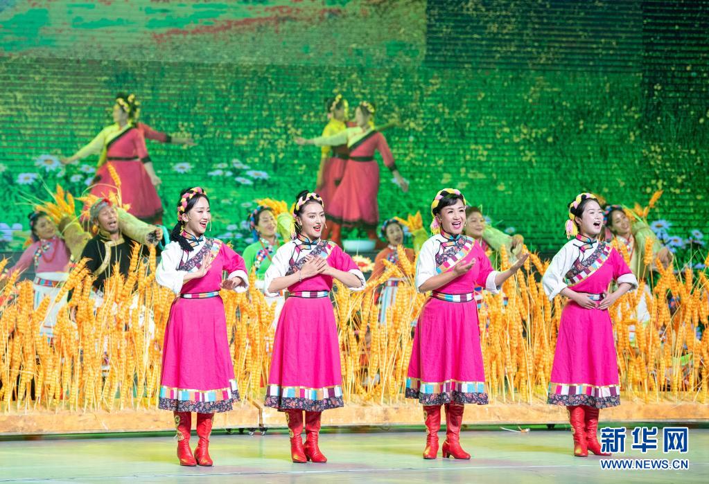 8月19日,慶祝西藏和平解放70周年文藝演出《西藏兒女心向黨》在拉薩西藏人民會(huì)堂精彩上演。新華社記者 翟健嵐 攝