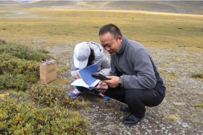 郝偉(右)和團(tuán)隊(duì)工作人員在野外采集植物樣本數(shù)據(jù)。受訪(fǎng)者供圖