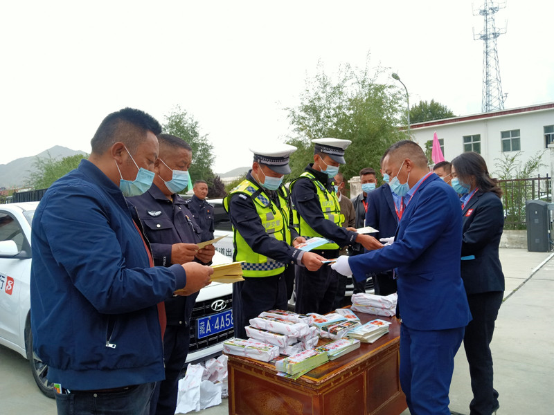 網(wǎng)約車(chē)、出租車(chē)等營(yíng)運(yùn)車(chē)輛是城市公共交通的重要組成部分,為進(jìn)一步強(qiáng)化道路交通安全宣傳,提高廣大駕駛員的安全意識(shí),有效預(yù)防和減少道路交通事故的發(fā)生,9月1日上午,拉薩市公安局交警支隊(duì)來(lái)到拉薩柳梧汽車(chē)站對(duì)轄區(qū)內(nèi)的網(wǎng)約車(chē)、出租車(chē)駕駛員代表開(kāi)展道路交通安全知識(shí)宣傳,并向運(yùn)營(yíng)車(chē)輛發(fā)放了標(biāo)有“拒絕酒駕”“請(qǐng)系好安全帶”等字樣的宣傳貼。