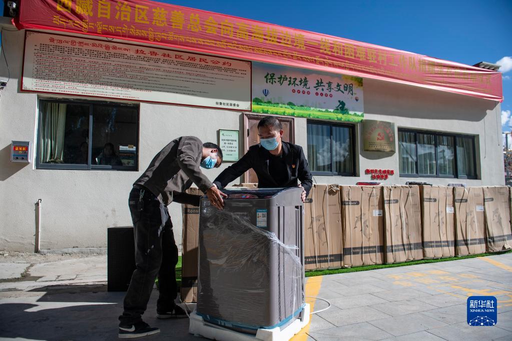 當(dāng)日,西藏自治區(qū)慈善總會(huì)攜手愛心企業(yè)在拉薩舉行捐贈(zèng)儀式,向拉薩、山南、日喀則、那曲等地50個(gè)高海拔、邊境一線駐村工作隊(duì)捐贈(zèng)全自動(dòng)洗衣機(jī)50臺(tái),幫助駐村隊(duì)員改善生活條件,引導(dǎo)社會(huì)慈善力量助力鄉(xiāng)村振興。