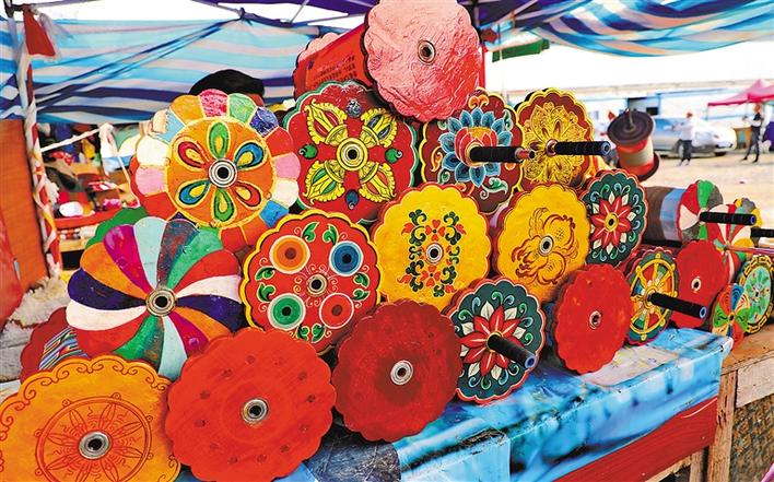 在拉薩河谷售賣風(fēng)箏的攤位中,拉薩風(fēng)箏制作技藝自治區(qū)級代表性傳承人普窮的生意最紅火,經(jīng)常有客人一買就是幾十只風(fēng)箏。