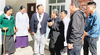 2020年9月,中國留學(xué)人才發(fā)展基金會(huì)理事長曹衛(wèi)洲(左三)帶隊(duì)前往洛隆縣,調(diào)研存量大骨節(jié)病患者,并了解已完成手術(shù)患者的恢復(fù)情況。