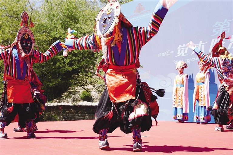 啟動(dòng)儀式結(jié)束后,還舉辦了第六屆覺木隆派藏戲文化旅游節(jié),邀請(qǐng)堆龍德慶區(qū)10支覺木隆藏戲表演隊(duì)表演特色劇目并為他們授牌。堆龍德慶區(qū)委常委、宣傳部部長(zhǎng)楊麗表示,本屆藏戲文化旅游節(jié),廣發(fā)“藏戲達(dá)人召集令”,邀請(qǐng)各派系、各唱腔達(dá)人表演特色劇目選段、共話藏戲,就是希望通過共建文化陣地、共享文化資源、共辦文化活動(dòng)的形式,凝聚合力,充分彰顯藏戲文化魅力,弘揚(yáng)優(yōu)秀傳統(tǒng)民族文化,保護(hù)和傳承藏戲文化遺產(chǎn),推動(dòng)藏戲文化深度發(fā)展。“很榮幸能參加此次活動(dòng),那嘎藏戲團(tuán)于1978年成立,那年我13歲,藏戲團(tuán)剛成立我就加入了,因?yàn)槲沂窒矚g藏戲,希望自己能將這種傳統(tǒng)藝術(shù)傳承下去?!苯衲?6歲的安多說。