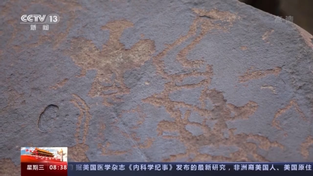 中國(guó)巖畫學(xué)會(huì)副會(huì)長(zhǎng)、西北大學(xué)文化遺產(chǎn)學(xué)院特聘教授 張建林:這種兩個(gè)三角形相對(duì)的這種動(dòng)物軀體,是在中亞地區(qū)比較典型的。是一個(gè)非常有意思的一個(gè)研究課題。