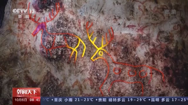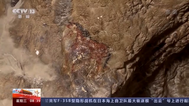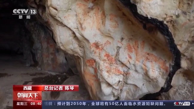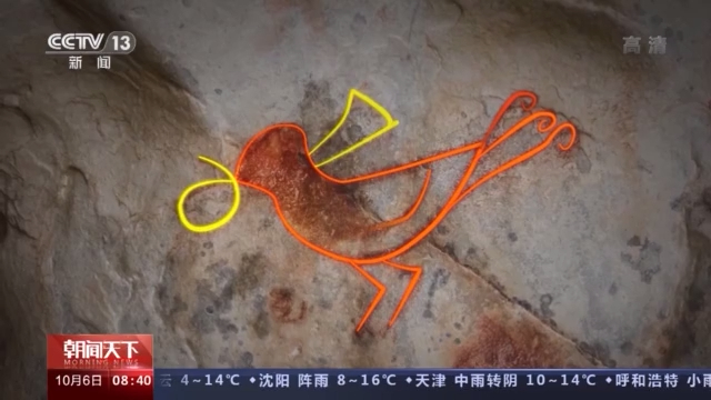 總臺(tái)記者 陳琴:現(xiàn)在我們就來(lái)到納木錯(cuò)環(huán)湖科考巖畫調(diào)查點(diǎn)的1號(hào)點(diǎn),您看到這個(gè)巖畫是由紅色的赭石這個(gè)顏料做成的,看起來(lái)特別像一只可愛(ài)的小鳥(niǎo)。