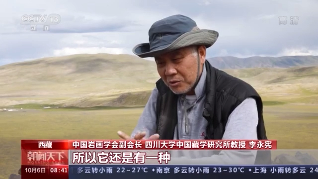 中國(guó)巖畫學(xué)會(huì)副會(huì)長(zhǎng)、四川大學(xué)中國(guó)藏學(xué)研究所教授 李永憲:它面對(duì)這個(gè)湖泊非常開(kāi)闊,然后背靠高山,所以它還是有一種就是我們藏北游牧部落比較傳統(tǒng)的一個(gè)領(lǐng)地意識(shí),在巖石上留下我們特有的印記。