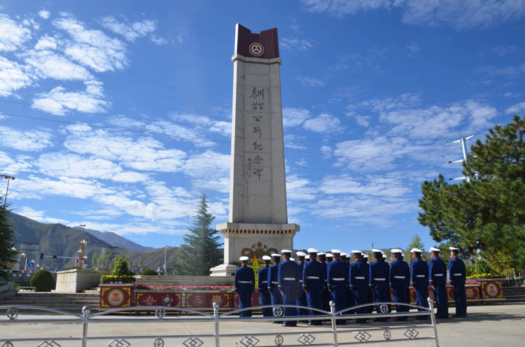 圖為西藏森林消防總隊(duì)特勤大隊(duì)在青藏川藏公路紀(jì)念碑前緬懷先烈。