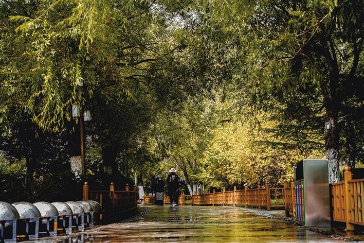 山明水凈夜來霜,數(shù)樹深紅出淺黃。進入10月,拉薩已褪去夏日的灼熱,秋風(fēng)吹動著泛黃的樹葉,絲絲涼意不經(jīng)意間沁入心扉。而此時的人們,也更加樂于走出家門,用心去看看這座披上了“秋裝”的可愛城市。近日,記者來到城關(guān)區(qū)二環(huán)路濟公橋、自治區(qū)黨校、拉魯濕地一帶,看到很多人正在快樂游玩,他們或與友人并肩散步聊著家常,或掏出手機記錄著眼前的美麗秋景,或坐在長椅上,沉醉于一本有趣的書,個個無比愜意地享受著當下靜謐安逸的秋日時光……