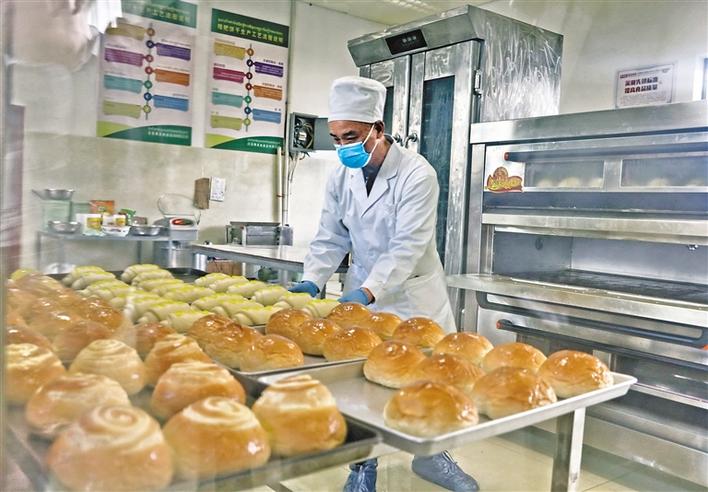 昌都市芒康縣峨江優(yōu)質(zhì)青稞種植基地農(nóng)牧民合作社工人在車(chē)間生產(chǎn)線上擺放青稞產(chǎn)品。丹增群培 唐斌 攝