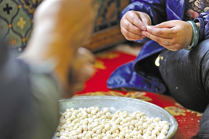 家住拉薩市城關(guān)區(qū)嘎瑪貢桑社區(qū)的達(dá)瓦頓珠一家正不亦樂(lè)乎地做“古突”。丹增群培 唐斌 攝