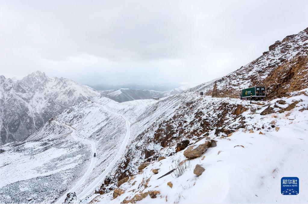 其美多吉與同事駕車行駛在雪線郵路上(資料照片)。其美多吉是中國郵政甘孜縣分公司郵運駕駛組的一名郵車司機,往返在甘孜縣與德格縣之間。這段路程是四川省甘孜州綿延5866公里、平均海拔超過3500米的雪線郵路最危險的一段。新華社發(fā)(周兵 攝)